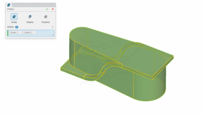 要获得公共体积,请选择目标对象和工具对象。基于它们,程序将分配一个公共卷。购买SOLIDWORKS