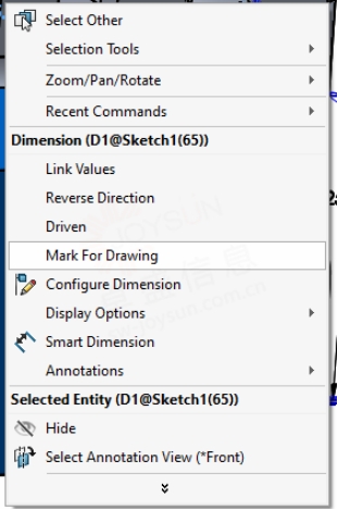 我们询问的下一个选项是我们想要将什么类型的项目导入到绘图中。您在零件文件中添加的尺寸会自动“标记为工程图”。您可以通过右键单击零件文件中的尺寸来关闭此功能,暗淡的颜色将变为紫色。此选项允许我们在进行3D建模时确保某些供参考的尺寸不会与其他所有尺寸一起拖入绘图中。回到我们的绘图,回顾模型项属性,尺寸下的第一个选项是导入为绘图标记的尺寸。第二个选项是导入未标记为工程图的尺寸,因此如果您最终需要该紫色尺寸,您仍然可以导入它。购买solidworks